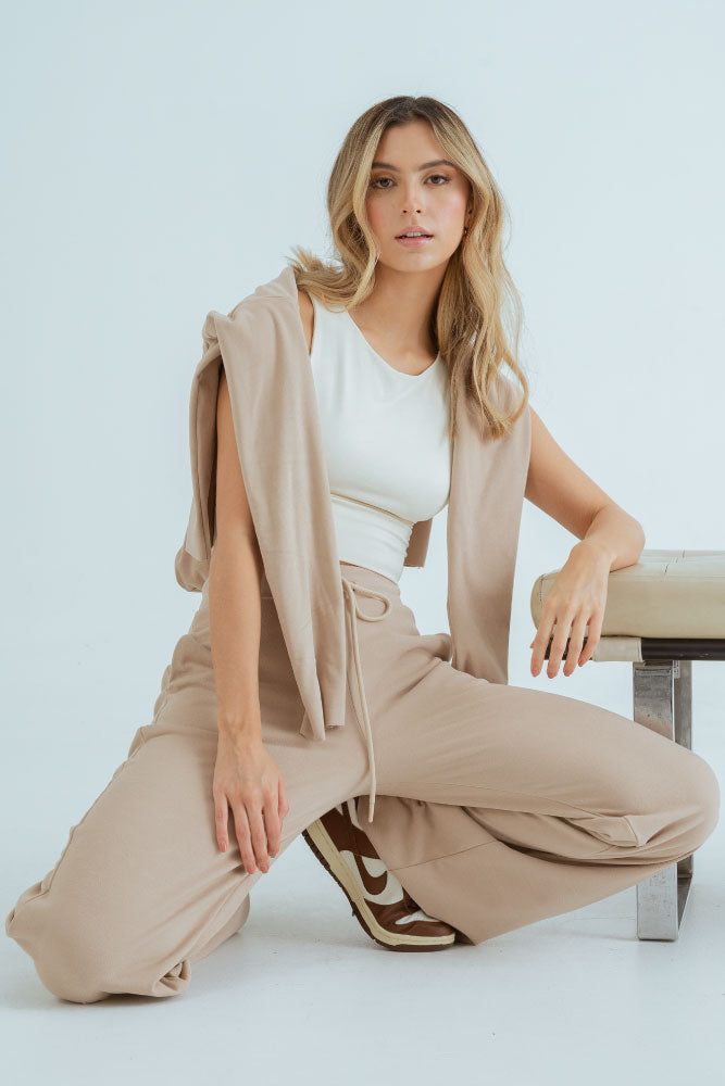 Hoodie en piel de durazno, manga larga con capucha y cordon decorativo.